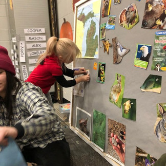 We added a Michigan bulletin board full of animals we find can find in Michigan. We worked on our scissor skills by cutting out animals from our collections of kids National Geographic magazines. It didn't take long to fill our board with some amazing creatures. Did you know butterflies drink the tears of turtles to get salt into their diet? A beaver has clear eyelids so it can see underwater. Who knew?